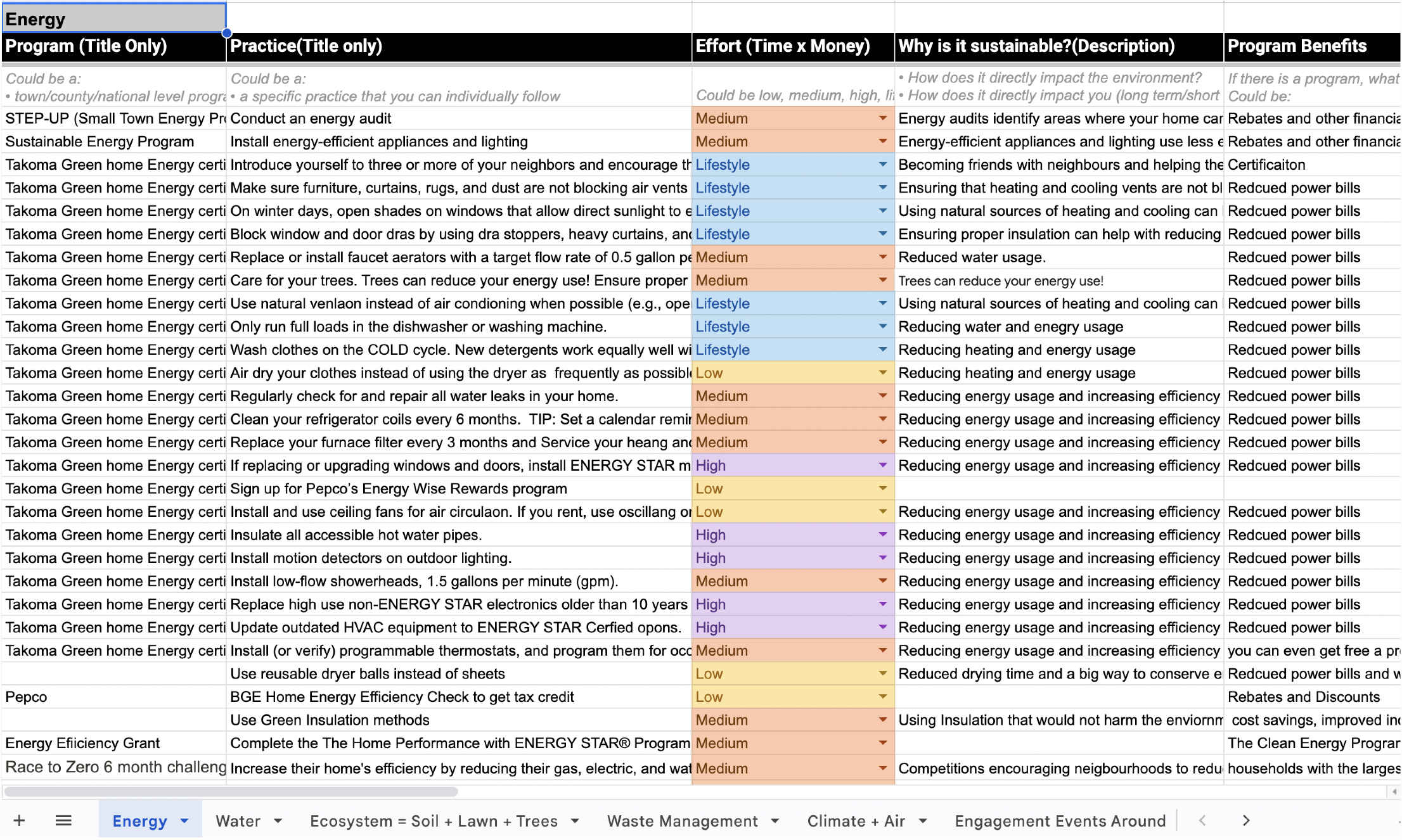 When the sustainability committee of University Park approached us with an idea to build a landowner rating system, they were heavily inspired by the LEED certification program and assumed a similar rating system would work for homeowners. The initial idea was to encourage landowners to make their homes more sustainable and be scored in comparison to their neighbors.